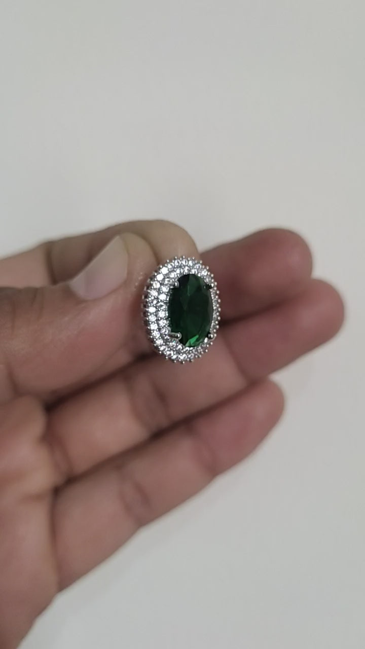 This elongated statement piece features a sequence of six meticulously crafted rhombus-shaped charms in a sleek, silver-toned setting. Each charm cradles a brilliant, light-catching stone, creating a cascading effect that mimics the shimmering clarity of a prism. The cool metallic finish offers a modern, sophisticated edge, perfect for highlighting your features with a refined, brilliant glow.